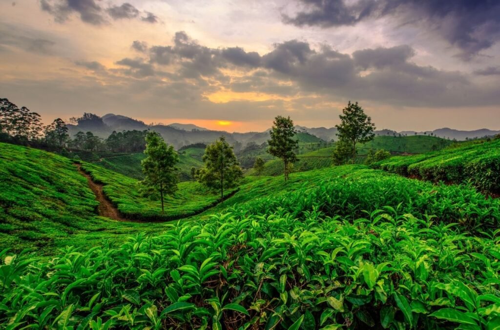 Munnar is a premier hill station in the Idukki district of Kerala, India, sitting at an elevation of approximately 1,600 meters (5,200 ft) in the Western Ghats. Its name literally translates to “three rivers,” referring to its location at the confluence of the Mudrapuzha, Nallathanni, and Kundala mountain streams.
