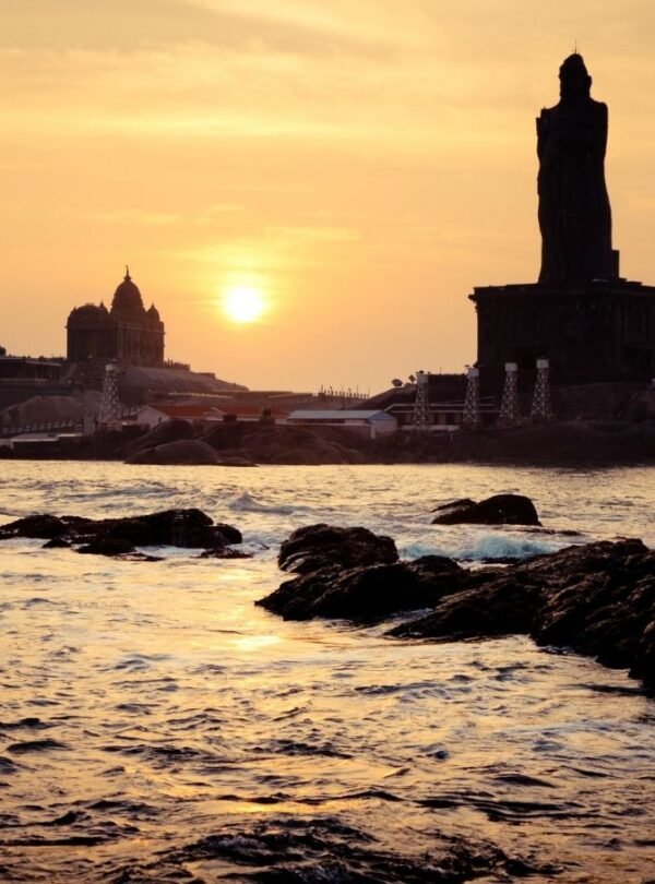 Kanyakumari, historically known as Cape Comorin, is a coastal town in Tamil Nadu that serves as the southernmost tip of mainland India. It is a unique destination where the Arabian Sea, the Bay of Bengal, and the Indian Ocean meet at the Triveni Sangam.